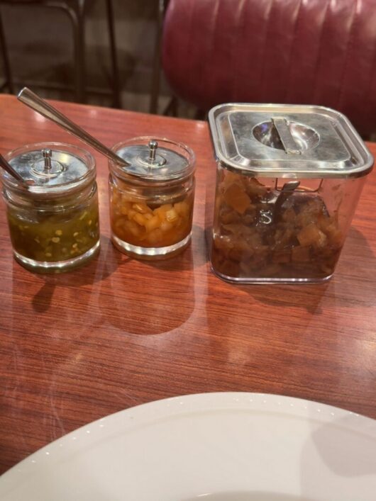 卓上のハラペーニョなどのお漬物を加え食べるとまた旨味倍増です