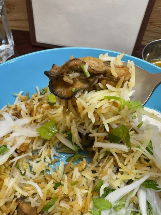 この牡蠣が漬かり込んだオイルがまたウマくてこのオイルをビリヤニにつけて食べてみなよ