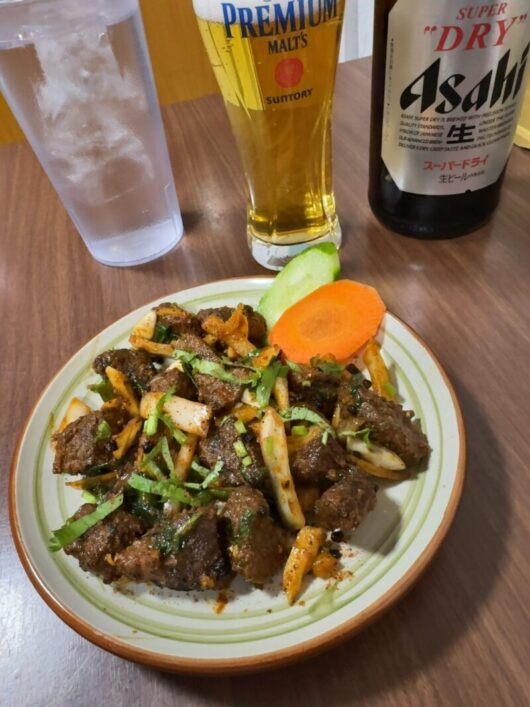 食事はダルバートを頼むとして正月のお昼だからビールとツマミも頼んじゃおう♪