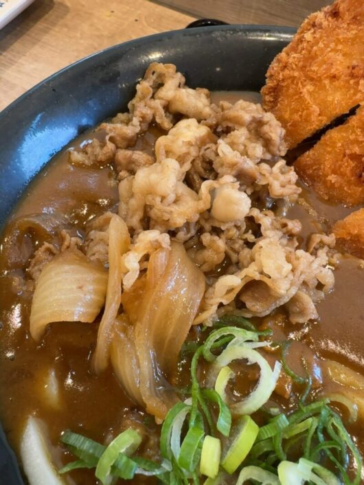 メインとなる「あふれ盛り肉カレーうどん」は期間限定メニュー