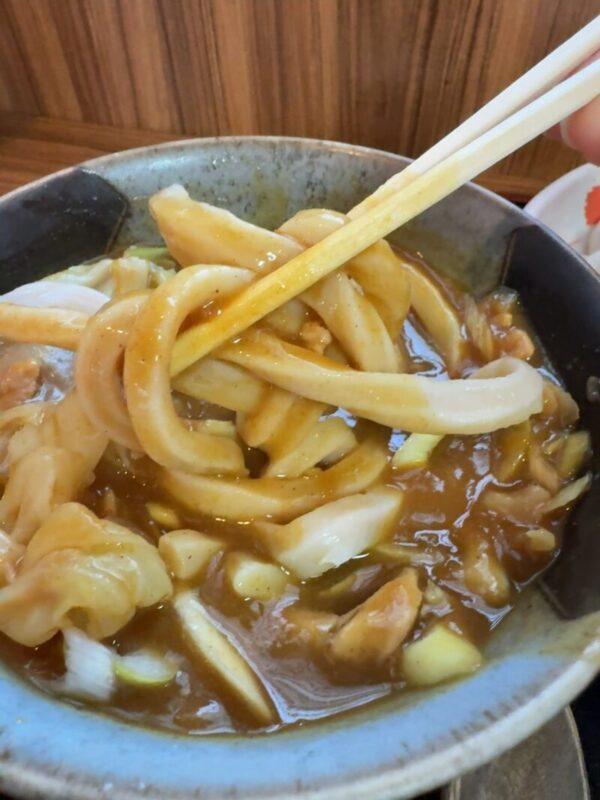 とは言えつけ汁うどんなので極太のうどんをカレー汁に浸し絡ませいただきます