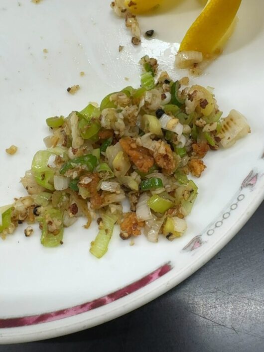 唐揚げの衣かすとスパイシーな葱達が残ってます