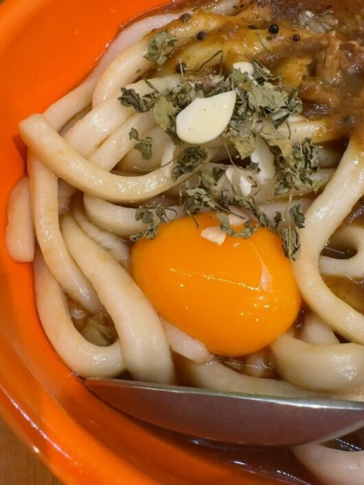 スパイスカレーと伊勢うどんが融合したスパイス伊勢うどんは汁気多め