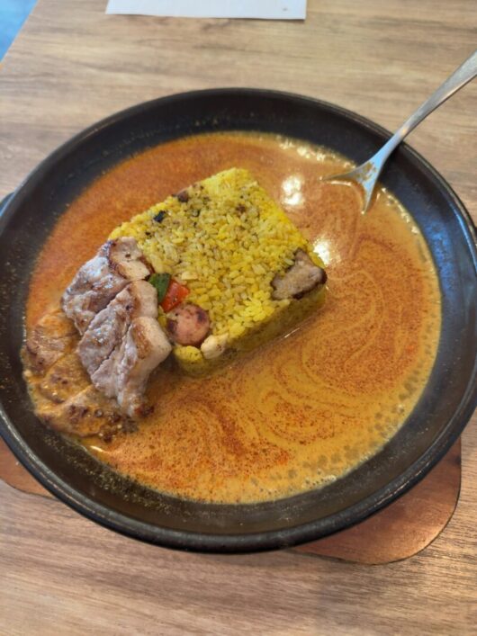 一口目から味のピークが来るタイプのカレーなので人によっては重く感じるタイプかもしれません