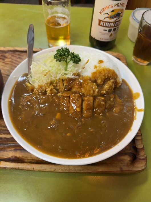 ロースカツカレーを食べながらビールをプハ~っと楽しむ・・・最高のお昼ご飯でした