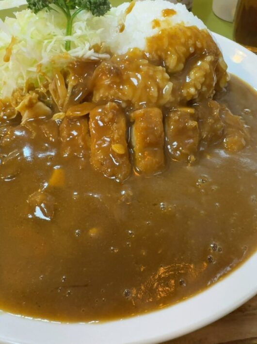 揚げたてのロースカツにタップリとカレーがかけられています