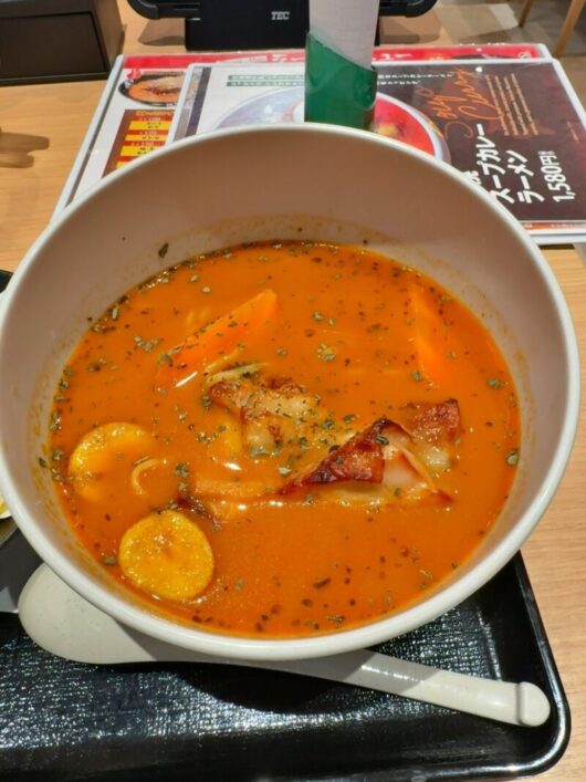 ラーメンとスープカレーをガッチャンコさせたメニューなのですよ♪